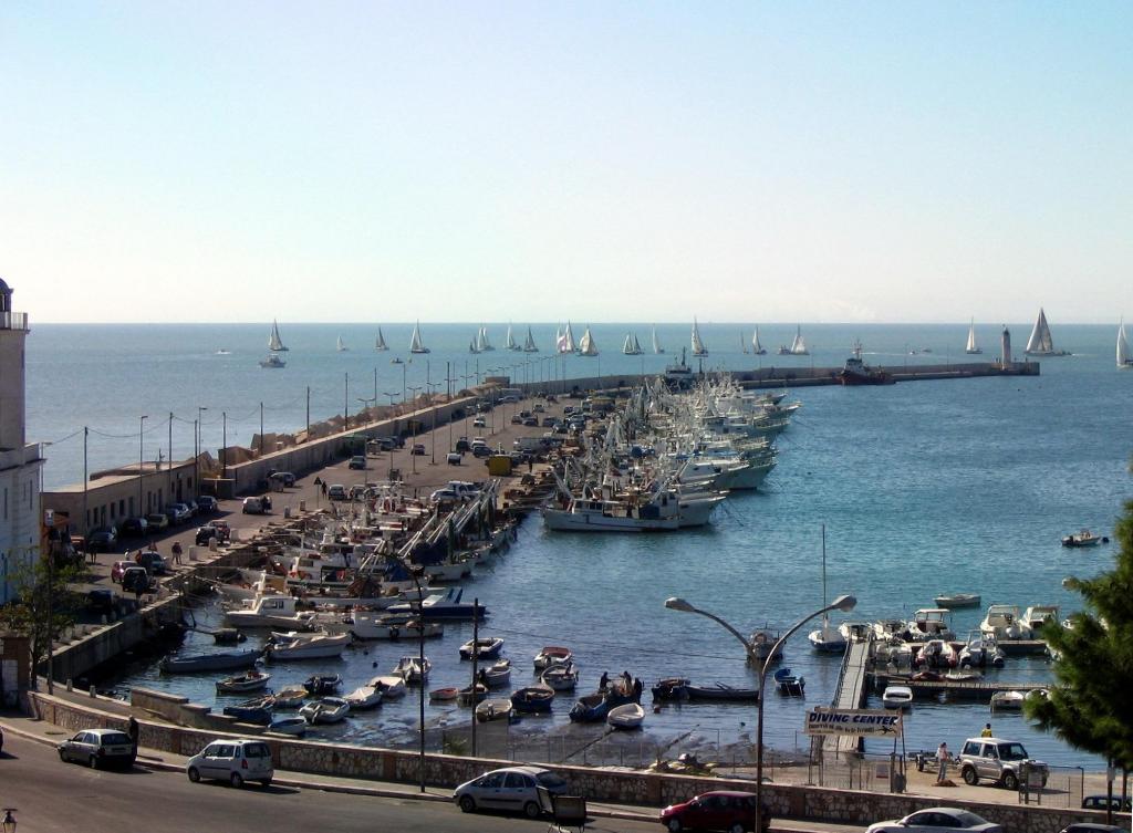 Dal castello di Manfredonia, il molo di levante, con lo Zenit in fondo